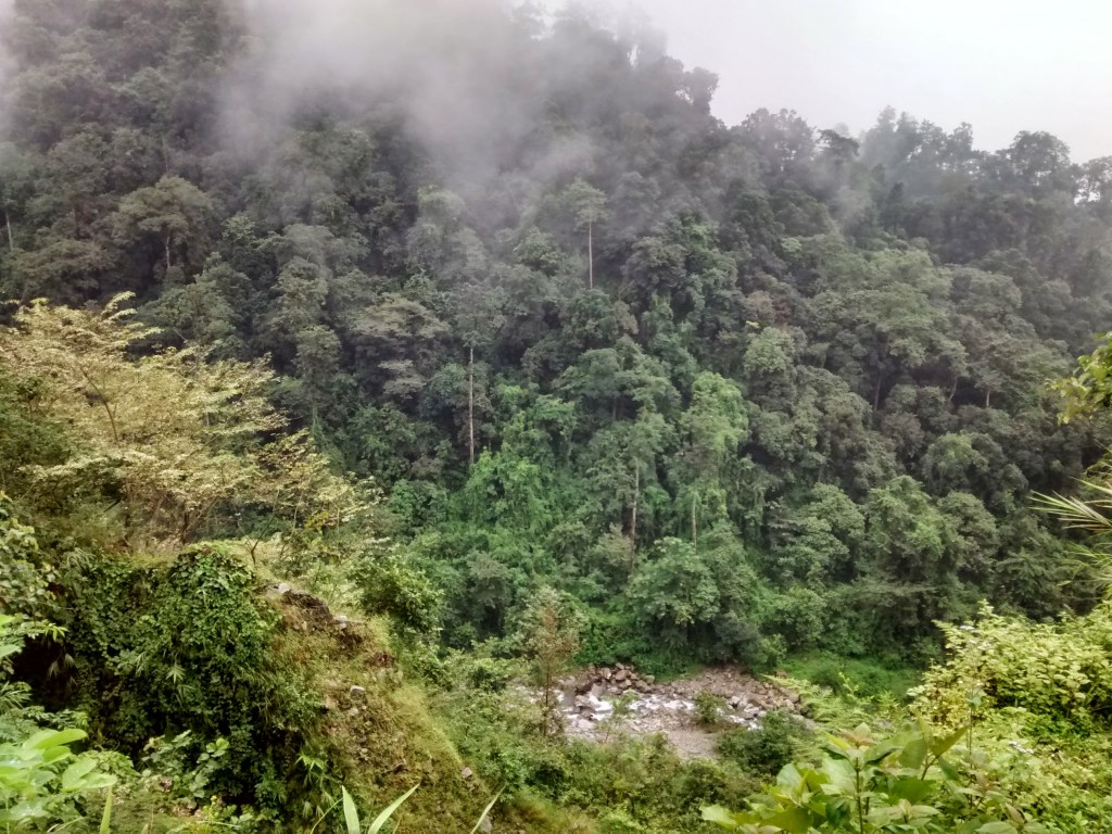 আকাশে মেঘ বাড়ছে, না ওপরে ওঠার দরুন সবার মেঘের কাছাকাছি চলে আসছে, সেটা অনভিজ্ঞ চোখকে ধোঁকা দিতেই পারে; কিন্তু একটু একটু করে যে আকাশে মেঘ ঘন হচ্ছে, সে বিষয়ে সন্দেহের অবকাশ নেই একেবারেই। বক্সার রাস্তায় যারা গেছেন, তারা জানেন, এই জনপদে এখনো নগরসভ্যতা পৌছোয় নি, আর তাই হোম স্টে-ই যাত্রীদের থাকার একমাত্র উপায়। ট্রেকের রাস্তাটা বেশী খাড়াই ও না, এবং দৃশ্যপট অত্যন্ত উপভোগ্য। মেঘের চাদর সরিয়ে রঙ্গমঞ্চের সজ্জার মতোই বক্সা দুয়ার একটু একটু করে নিজেকে মেলে ধরছিল। রাস্তার পাশে, নীচের ঘন জঙ্গল থেকে ধোঁয়ার একটা কুন্ডলী আস্তে আস্তে উঠে মেঘের মধ্যে মিশে গেছে।