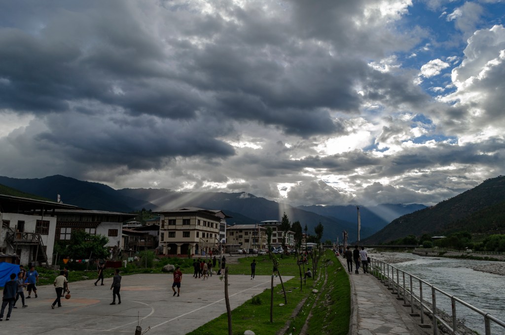 আমাদের ফোন খুলে দেখি, সত্যিই তো! হোটেলের পেছনে গিয়ে বুঝতে পারলাম, কেন ফ্রী ওয়াই ফাই। পাশেই যে টেলিফোন এক্সচেঞ্জ… কিন্তু বাইরে বেড়িয়ে ফোনের দিকে তাকানোর ইচ্ছা আর কারোর করল না। কারণ, পারোর আকাশে তখন এক পশলা মেঘ, আর তার ফাঁক দিয়ে ফেটে বেড়িয়ে আসছে আলোর রশ্মি। সকাল থেকে নাকি বৃষ্টি হয়েছে, আর তাই আকাশে একটা রামধনুও উঠেছে। সবমিলে একটা যাকে বলে মেসমেরাইজিং ব্যাপার। বিকেল গড়িয়ে সন্ধ্যে নামা অবধি আমরা নদীর পাড়েই কাটালাম। তারপর, ঘরে গিয়ে জামাকাপড় ছেড়ে, একটু বাদে খেতে যাওয়া হল, পেরিজোরলিং-এরই রেস্তরাঁতে।