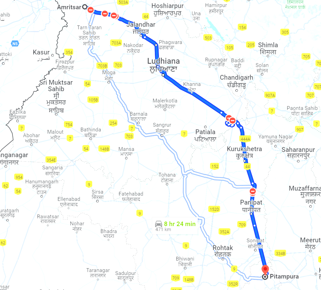 বেরোনোর পর, প্রথম টোল বুথেই ফাস্টট্যাগ চালু করে নিলাম, আর প্রথম ভদ্রস্থ ধাবাতে খানদুই করে পরোটা সাঁটিয়ে নিলাম, যাতে এই প্রাতরাশেই বিকেল অবধি টানা যায়! এবার আর বাধা নেই, পেট ভর্তি, গাড়ির ট্যাঙ্কও ভর্তি, ফাস্ট ট্যাগও কাজ করছে, আর পাঞ্জাবের রাস্তায় স্পীড লিমিট নেই! সুতরাং, মনের আনন্দে ফিফথ গিয়ারে গাড়ি ফেলে এগোতে থাকলাম বাঘা বর্ডারের দিকে!