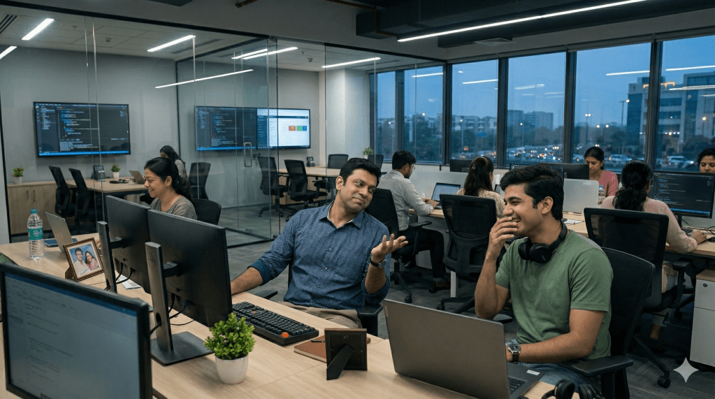 -“সত্যি বাবা! তোর হাসির শব্দে একদিন কারও না কারো হার্ট ফেল হবে এই অফিসে, রাহুল! তোর নামটা রাহুল না রেখে ‘রাহু’-ই রাখা উচিত ছিল! দেখছিস পুজো করছি, এরকম ভাবে কন্সেনট্রেশন ব্রেক করার কি মানে?”